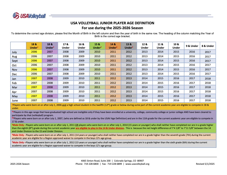 1. Determine your age classification using the document titled USA Volleyball Junior Player Age Definition located to the right.
